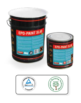 EPOPAINT SL 40 використовується в якості шару покриття на підлозі з високими вимогами до механічної та хімічної стійкості. Він застосовується в цементних підставах, таких як: вирівнюючий розчин підлог, бетон і цемент аміанто. Він ефективно захищає і прикрашає цементні промислові підлоги в лікарнях, виноробнях, молочній промисловості, молочних заводах, кухнях, лабораторіях, бойнях, автомийках, гаражах і механічних майстернях, автозаправних станціях, басейнах і фонтанах. Поверхні, на які наноситься продукт EPOPAINT SL 40, можуть перебувати в безпосередньому контакті з харчовими продуктами. Він наноситься на металеві та дерев'яні поверхні після грунтовки EPOMETAL W-5300, такі як підлоги з листової сталі, МДФ або ДСП. Його покритття кварцовим піском кварцової гранулометрії 0-0, 3 мм створює протиковзкі поверхні.